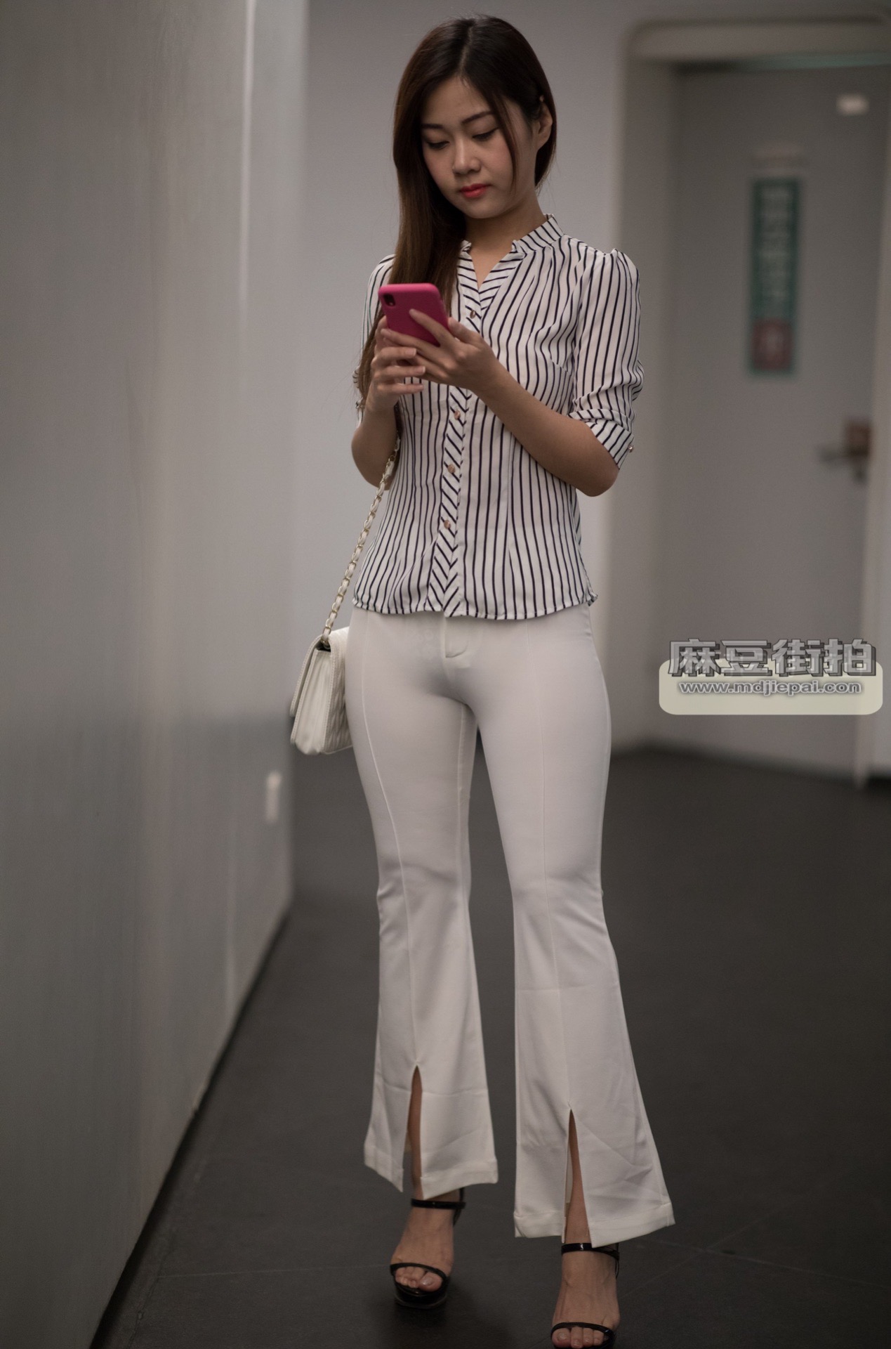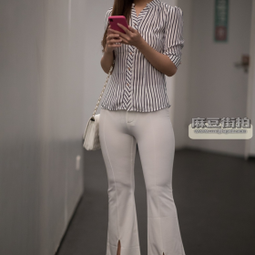 街拍包臀裙:开叉白裙长腿美女
